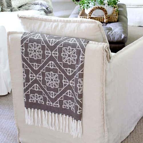 Everyone has a favourite chair to relax in and often it’s not the prettiest one in the house. An easy way to give a tired chair a fresh new look is to drape a decorative throw over the back of it. Since it can be hard to find a throw that’s perfect for your space, create your own decorative throw from a favourite fabric (giving you endless colour and pattern options) for the perfect room refresh!